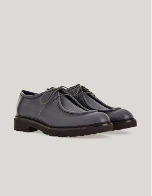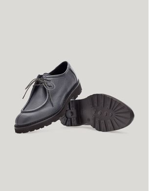 Zapato derby con puntera en piel de ciervo negra y suela de goma